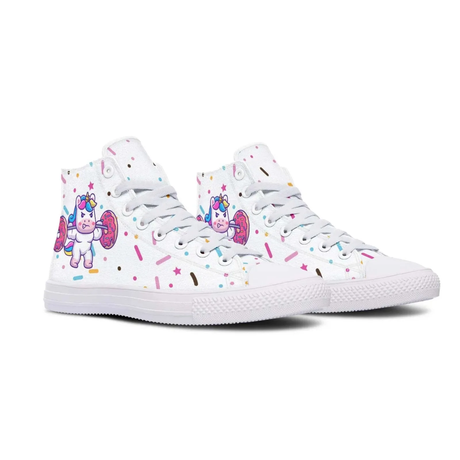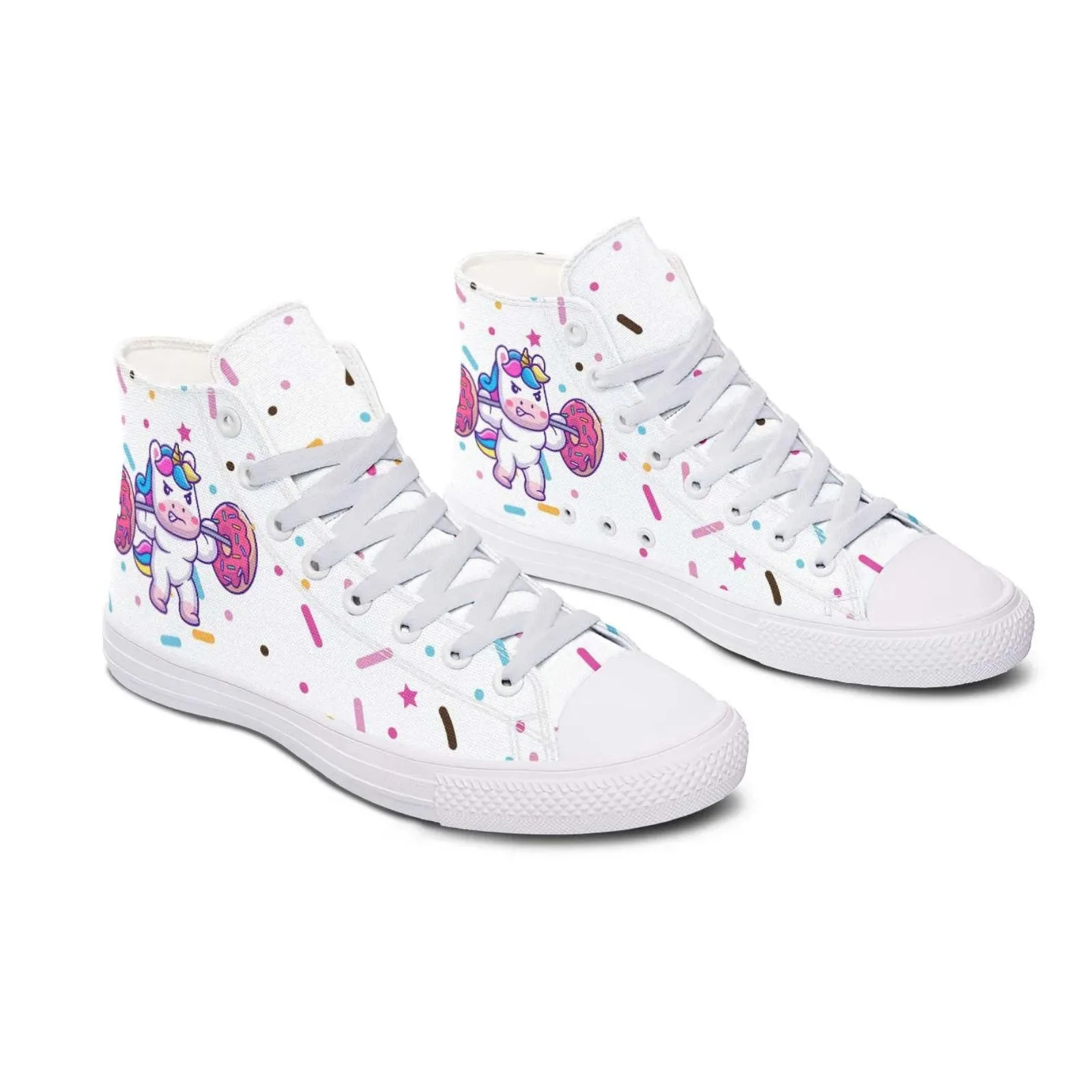 Funny Unicorn Donuts High Canvas Shoes blend simplicity with everyday comfort, featuring a soft canvas build and a lightweight sole. The standout detail lies in the thoughtful, stylish patterns on both sides, adding a unique touch that easily complements a variety of outfits.