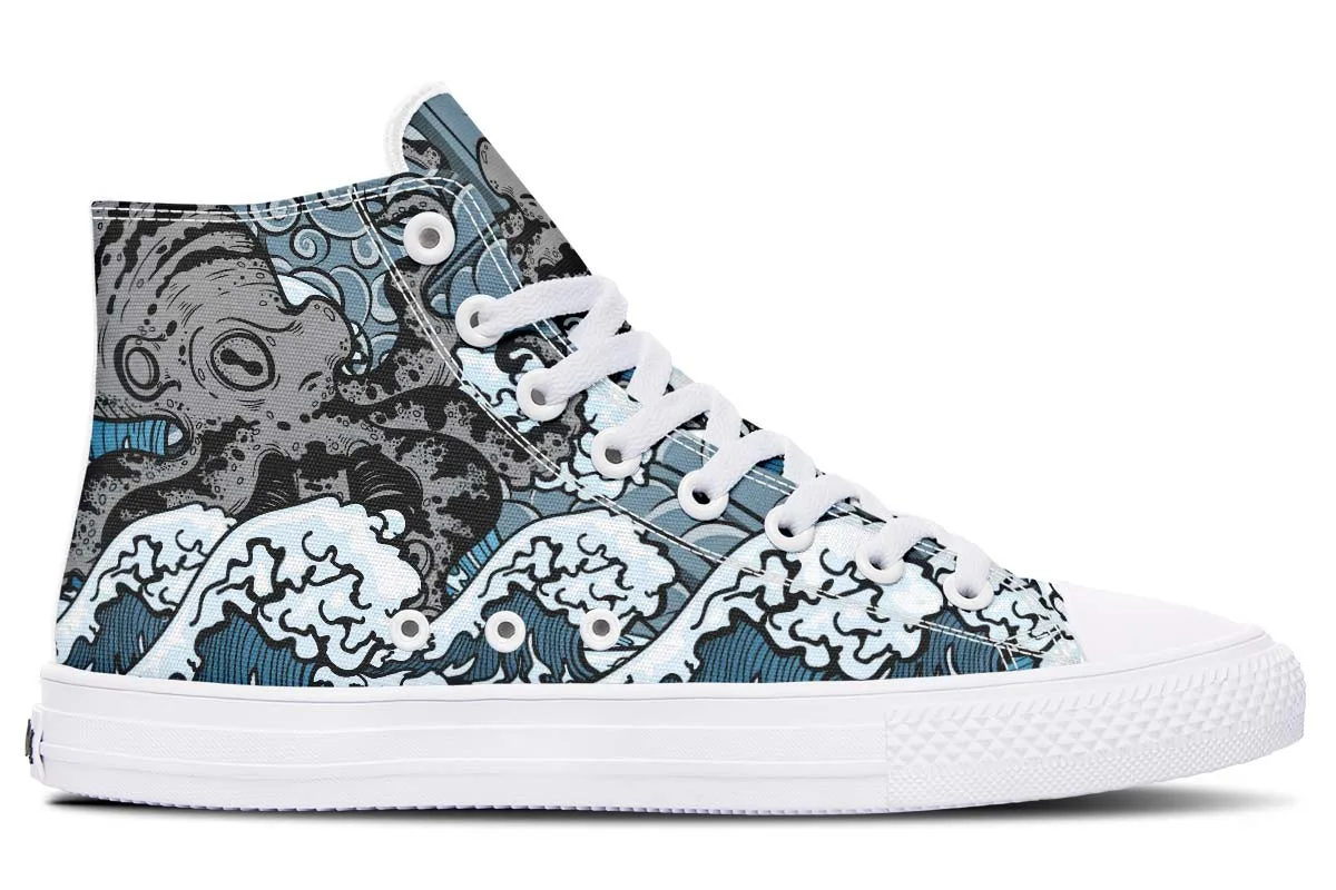 Octopus And Wave High Canvas Shoes blend simplicity with everyday comfort, featuring a soft canvas build and a lightweight sole. The standout detail lies in the thoughtful, stylish patterns on both sides, adding a unique touch that easily complements a variety of outfits.