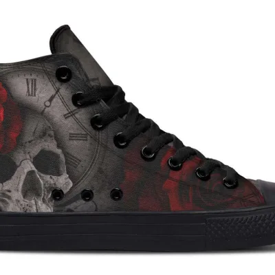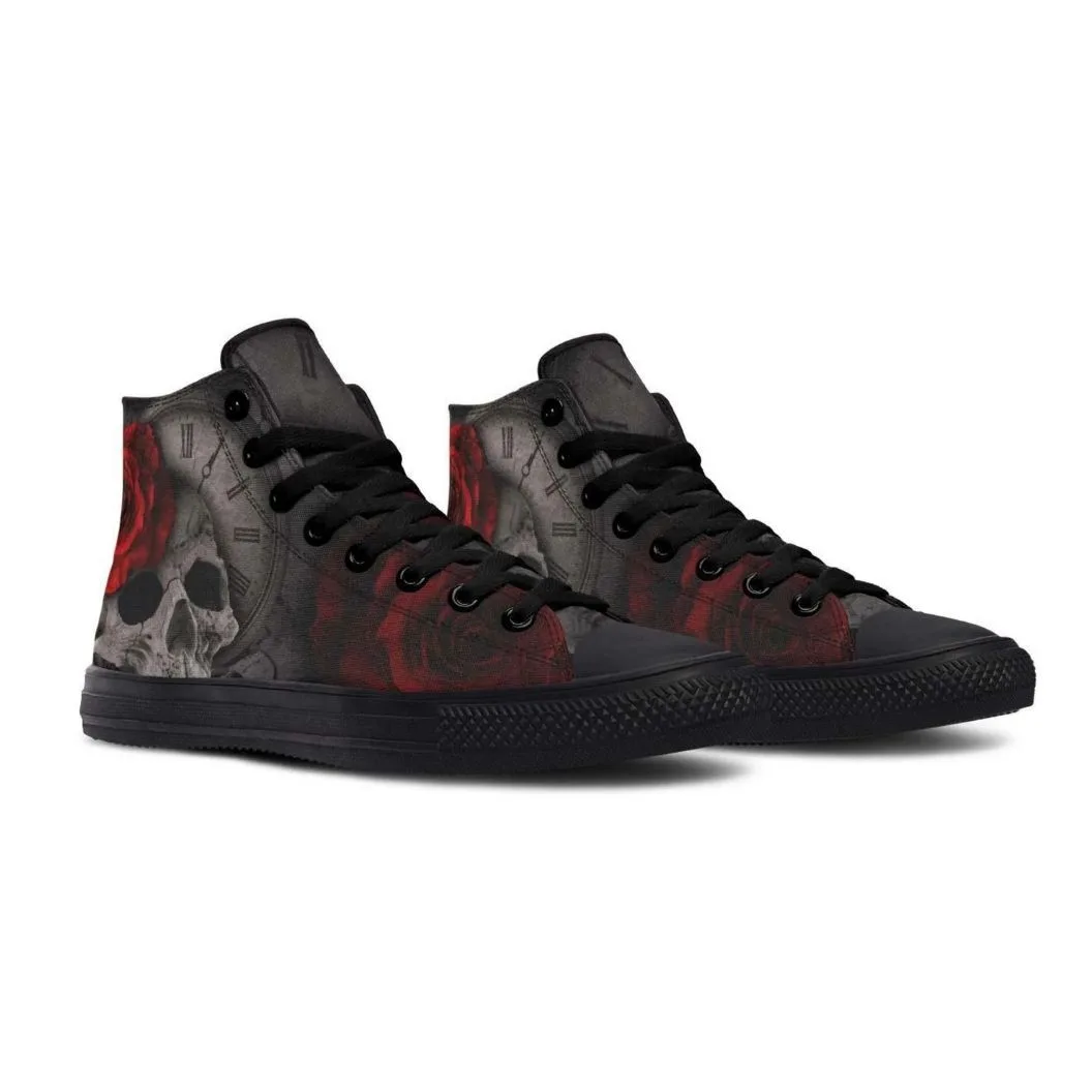 Rose Time Skull Black Canvas Shoes blend simplicity with everyday comfort, featuring a soft canvas build and a lightweight sole. The standout detail lies in the thoughtful, stylish patterns on both sides, adding a unique touch that easily complements a variety of outfits.